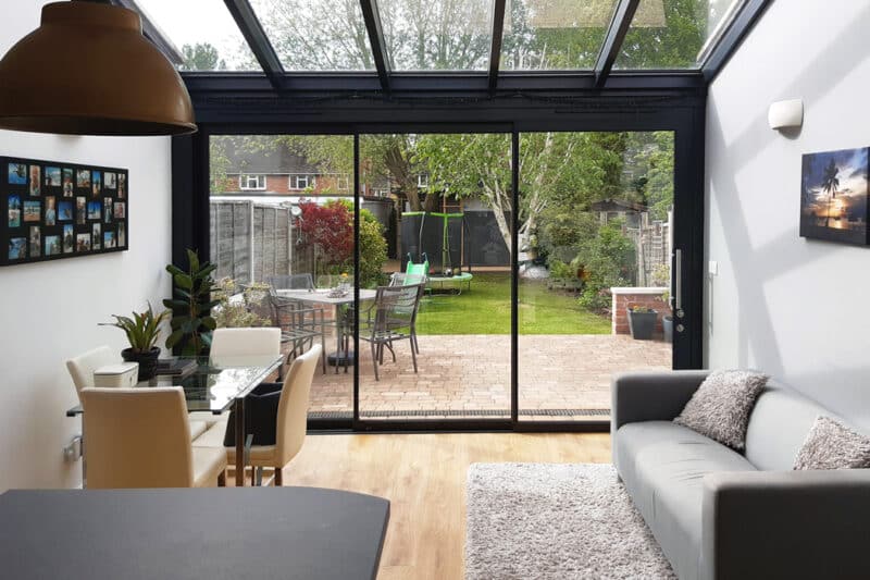 Our lean-to glass roofs are ideal for extension or renovation projects, using thermally-broken aluminium rafters to provide large glass roofs with minimal frame.