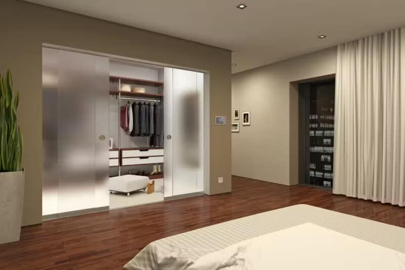 This innovative top-running, frameless slide and turn door provides a stylish, minimalist appearance when closed.