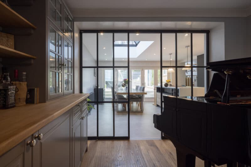 Our SF20 sliding doors can be designed in an Art Deco style to match the look of traditional steel glazed screens.